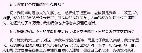 然而,他在巅峰期突然选择单飞,并改名为“何味奇”。这个名字与一位比他大11岁的香港女富商创办的“味奇”食品公司相呼应。